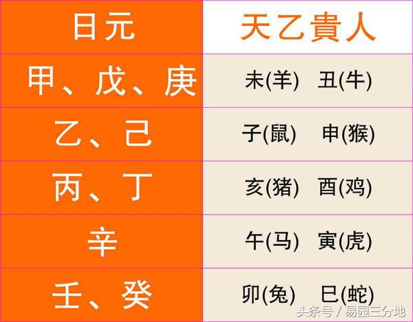 2、太极贵人查法:以年干和日干为主,四柱地支见者即是。