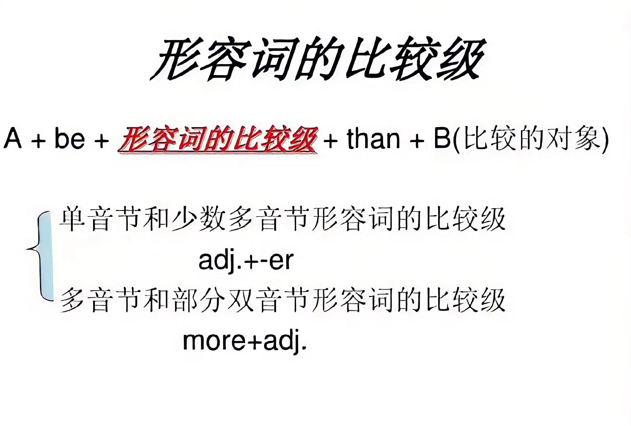 上周我们学习了形容词的比较形式以及形容词原级的用法,同学们还有印象么?