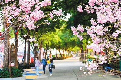 2月16日,深圳观澜湖樱花竞相绽放,游客纷至沓来。 鲍赣生摄(人民图片)