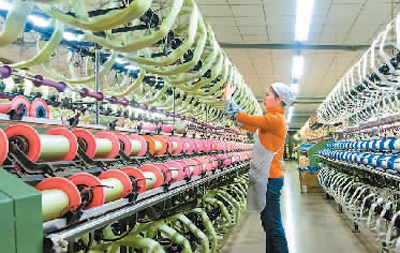 2月12日,广西蒙山县丝绸工业园区的一家丝绸家纺公司内,工人正在忙碌。 林志清摄(人民图片)