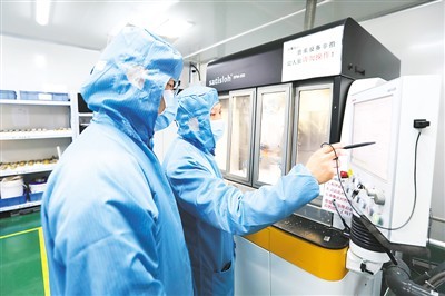 2月17日,福建省福州市闽侯县的福特科光电有限公司,研发人员正在对精密光学元件进行生产加工。 谢贵明摄(人民图片)