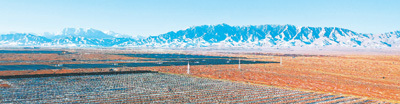 2月9日,建设中的甘肃省张掖市甘州区南滩光电产业园龙源40MW光伏发电站建设项目工地。 杨永伟摄(人民图片)
