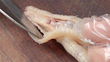 下面小科来介绍一下一般的无骨凤爪是怎么快速地给鸡爪剔骨的: