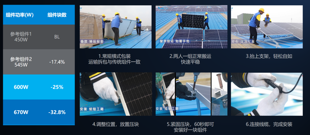 为了响应市场和用户的需求升级,屋顶分布式光伏也逐渐迈向了大尺寸大功率的600W+时代。600W+组件已在全国多个屋顶分布式光伏项目得到广泛应用,在分布式屋顶的价值已经得到充分验证。