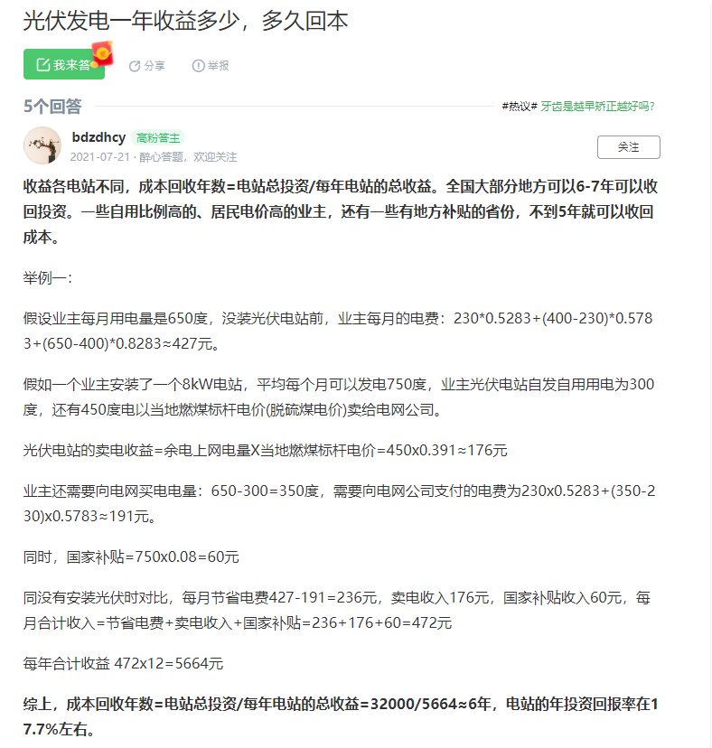 甚至在2021年仍然有不少人在网上询问光伏投资相关的问题,然而复杂的计算公式直接让许多用户表示直接眩晕。其实不仅复杂,并且这样落后的计算方式从专业层面来说也十分不准确。