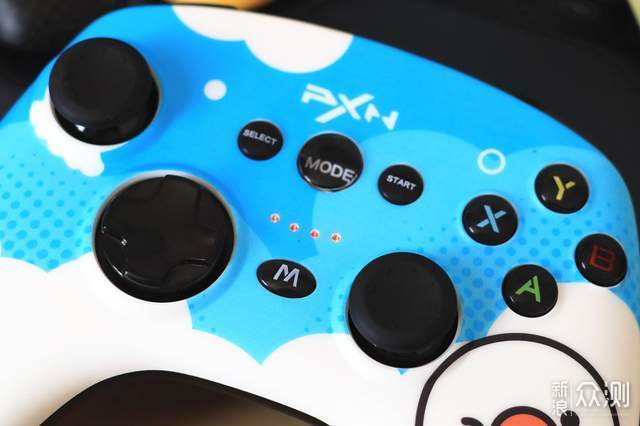 按键方面,莱仕达PXN-P20游戏手柄也是采用比较经典的设计布局,左侧一个八向陀螺式十字按键、一个大摇杆,右侧是ABXY四个功能按键以及一个大摇杆。