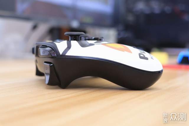 游戏手柄整体做工用料考究,采用的是非对称式XBOX手柄的设计风格,这也是时下比较受欢迎的设计,可以满足不同游戏场景的需要。