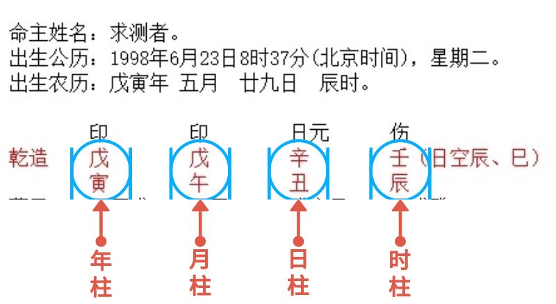 点击查看:《女生八字夫妻星、配偶星(快速查询)》,得知金类的夫妻星、配偶星(火):丙、丁、午、巳,因此夫妻星、配偶星在月柱上。