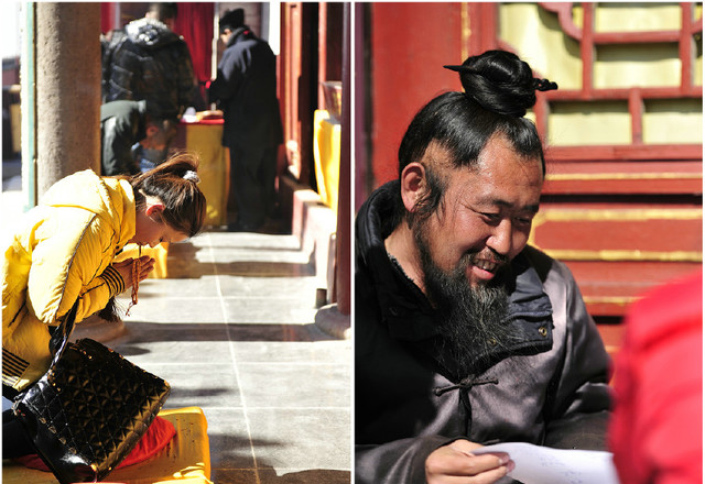 距北京180公里处的河北省境内有座集佛、道、儒于一体的宗教名山景忠山,自然风光秀美,历史底蕴深厚,每年,这里都会举行数次庙会来吸引游客和信仰者来此,这里,在山顶的朝拜处,更是经常有几位算命先生在此摆摊,生意做的还很红火。