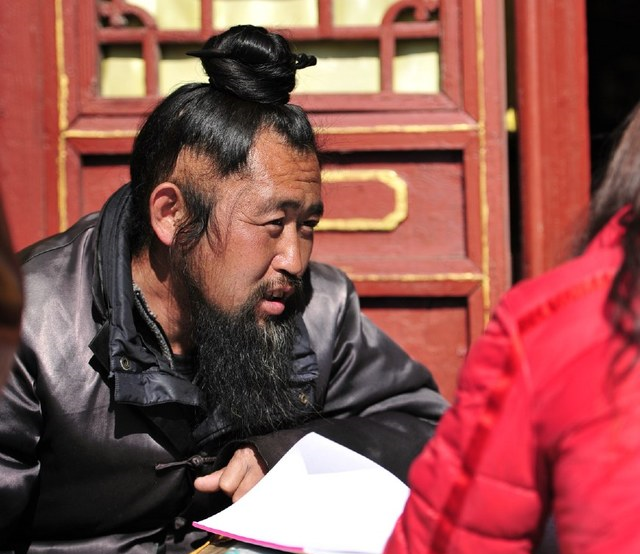 在祈福堂前,两名道士装扮的男子,更是吸引人目光,他们在门前摆一桌子,桌上放着纸和笔,桌前几把凳子,他们对落座的客人便开始发问,原来。他们是算命先生。