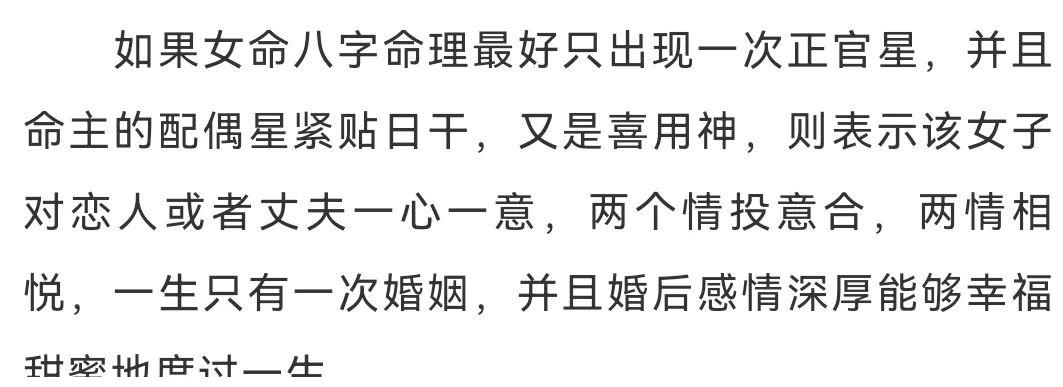 二:女命八字命理中只有一个正官星
