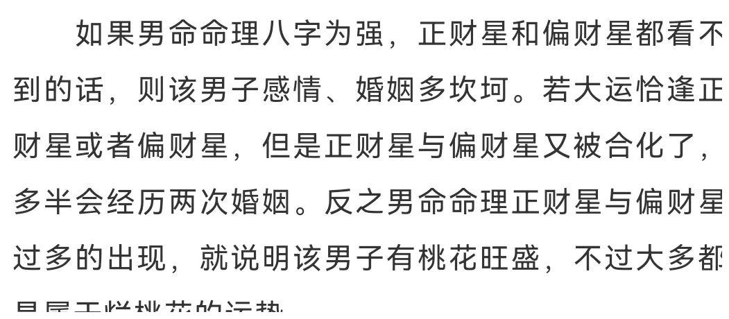一:男子八字命理中只有正财星