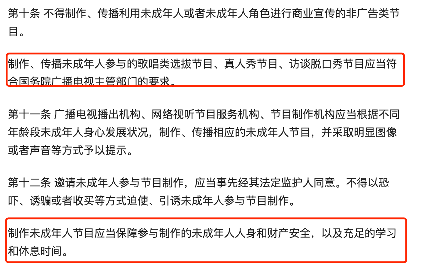 2019年,广电总局对于未成年人上节目作出了相关的规定,其目的也是为了保障未成年人从艺的权益,让他们在工作的同时,能有更充足的时间去学习。