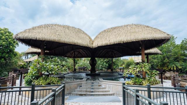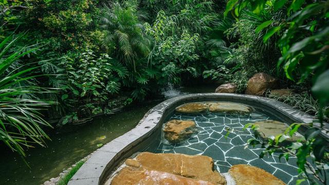 酒店的温泉度假区大大小小的温泉池有65个,大部分每个命名的池都会有自己专属的屋棚,连白天泡也不怕晒黑。
