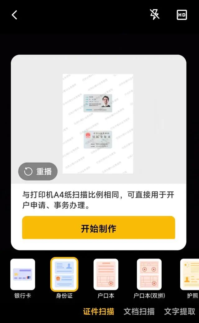 下一步是扫描身份证照片。不要使用任何图纸修复技术。几分钟内拍两张照片。软件将自动己将完成排版并加水印直接导出要打印的文件印出来吧。