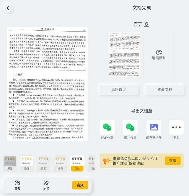 打开第一个功能:文档扫描。您可以将拍摄的照片转换为文档,拍摄时自动裁剪,添加多个页面以形成文档,导出文件或图片,编辑后直接发送,非常方便。