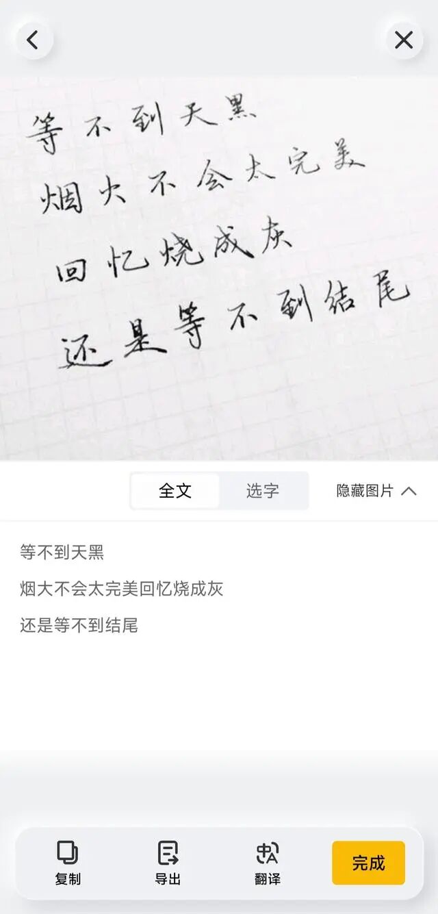 值得一提的是,这种文本提取不局限于常规字体,手写或笔记也有可能,比如下面的图片,除了非常刻意之外,非常规的书写会被错误地识别,并且正常书写的识别准确率非常高。