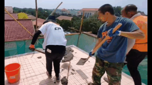 今天不算热,就是有些晒。说着,王佳蕊铆足了劲儿,将一推车混凝土运走卸掉后,再回来装第二车,熟练的挥锹让她节省了时间。