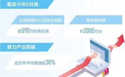 记者日前从2022中国算力大会获悉:截至今年6月底,我国在用数据中心机架总规模超过590万标准机架,服务器规模约2000万台,算力总规模超过150EFlops(每秒15000京次浮点运算次数),排名全球第二。